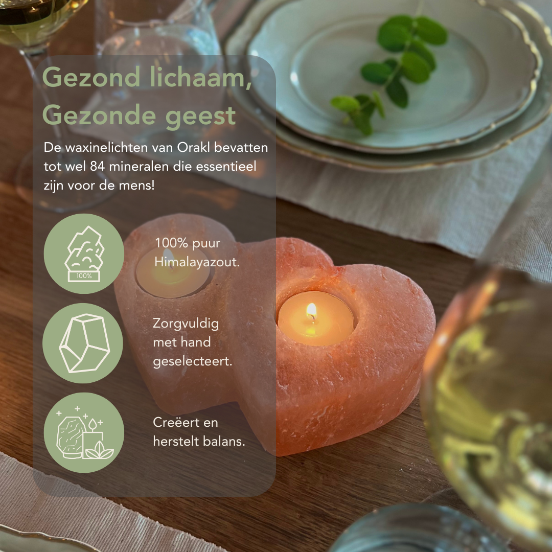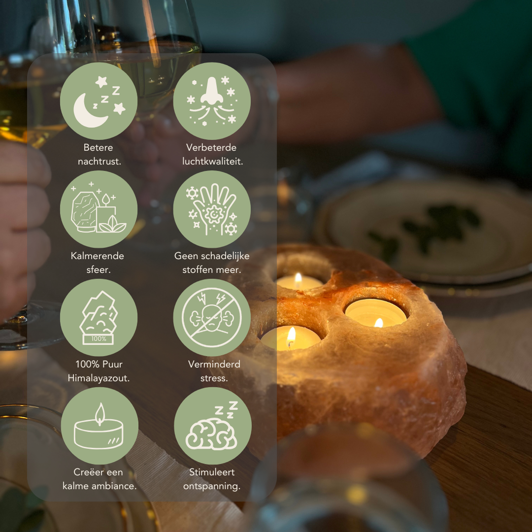 Ce magnifique photophore en pierre de sel est un véritable cadeau de la nature. La couleur vive du sel de l'Himalaya rayonne non seulement de chaleur, mais active également une sensation d'énergie positive et de vitalité dans votre intérieur. En regardant la lueur des bougies danser sur le motif unique de la pierre de sel, vous sentez la tension quitter votre corps et une paix profonde vous embrasser.